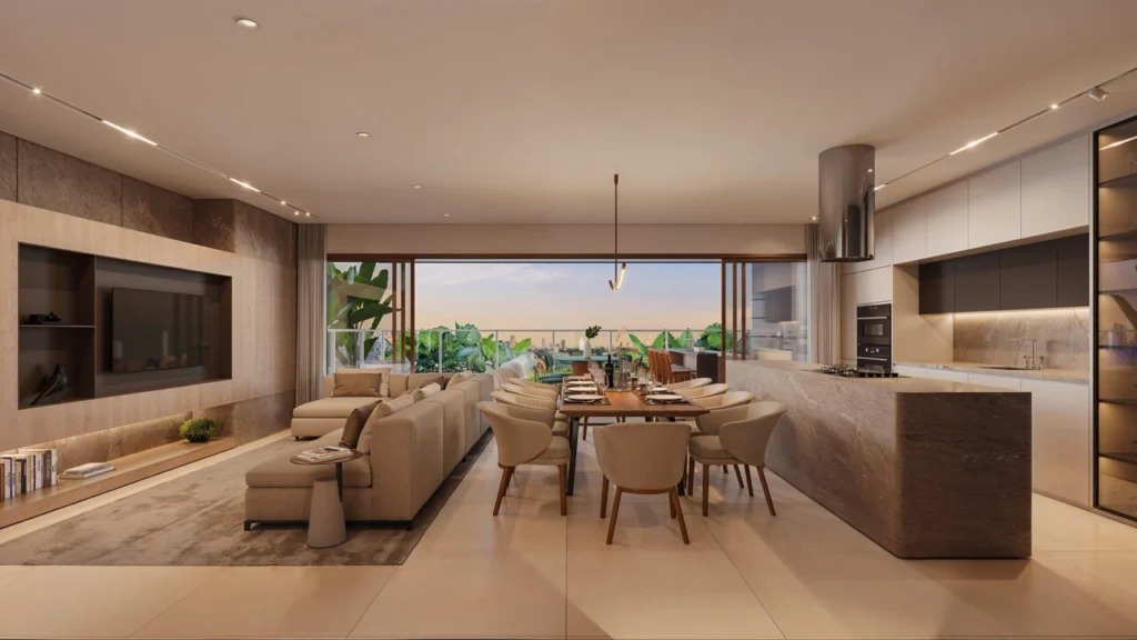 Com plantas de 137 a 164 m², dois apartamentos por andar, arquitetura fascinante e paisagismo singular, o empreendimento teve seus espaços planejados para despertar experiências sensoriais, oferecendo uma vida marcada por elegância e leveza.