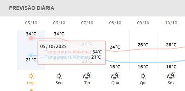 Mas há mudança na terça-feira (7), quando tem previsão de chuva.