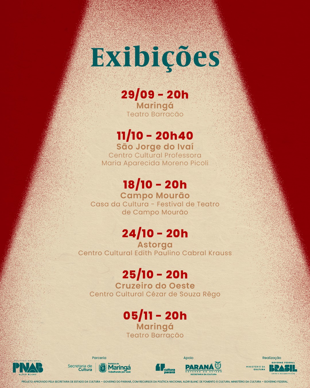 Todas as informações de datas, horários e locais das apresentações podem ser conferidas no perfil do espetáculo no Instagram.