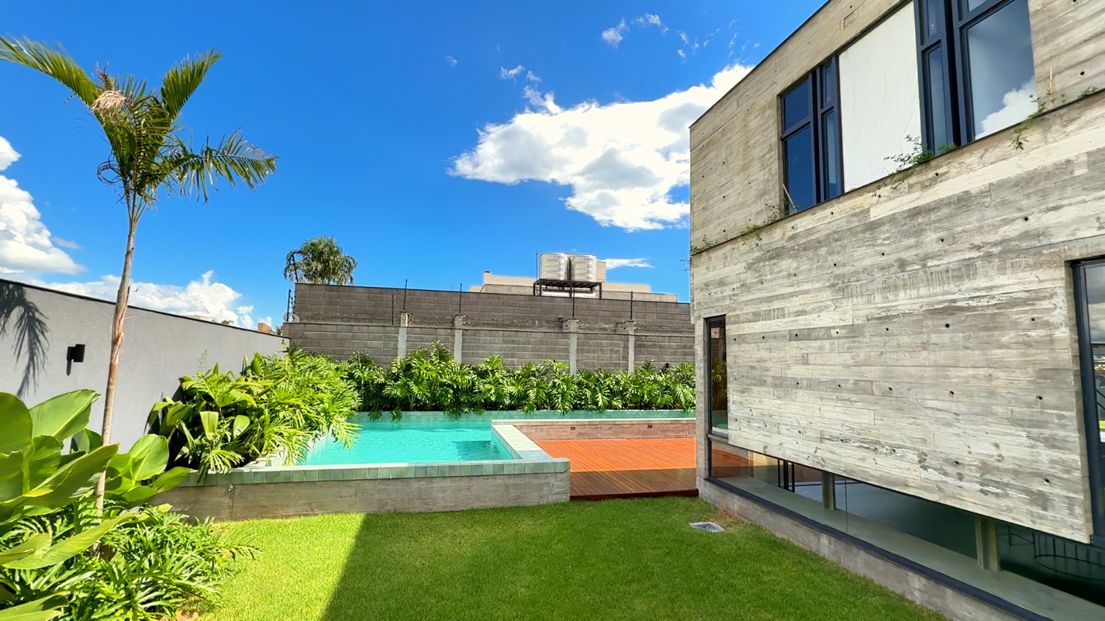 Por dentro, o projeto aposta em ambientes amplos, integrados e bem iluminados, priorizando conforto e funcionalidade. São quatro suítes, três salas, escritório e um espaço gourmet planejado para receber convidados. A área externa conta ainda com piscina privativa e um espaço generoso para convivência e lazer.